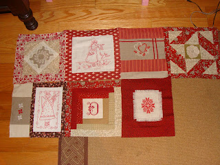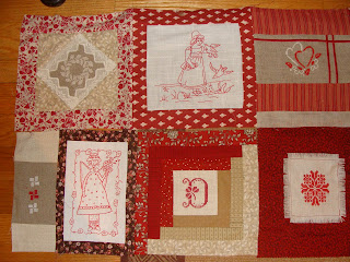This is all I have right now... I still have LOTS of embroidery to make blocks from. The block I make up as I go.