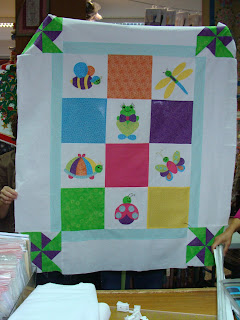 Este trabalho em half squares (meios quadrados) ficou engraçado... como faltava tecido colocamos uma barrinha de outra cor no fundo e topo do trabalho