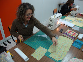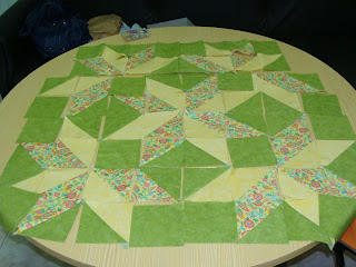 Mais um trabalho de half squares (meiso triangulos). Dependendo do tamanho destes quadrados pode fazer grande que chegue para uma cama de casal. Neste caso será um painel para parede. Falta aqui a foto de um outro trabalho tambem em half-squares com diamantes. Ficou lindo mas nao sei como esqueci de tirar foto. Fica para a proxima vez.
