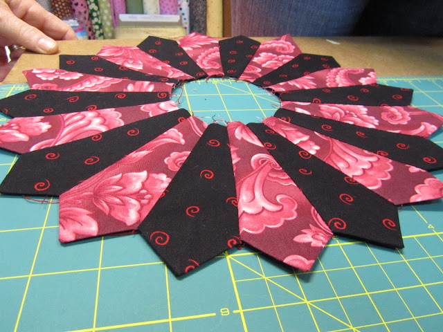 ALGUNS dos blocos de caleidoscopio da Isabel... ainda só unidos pela metade, falta unir ao meio. Ficaram todos LINDOS... Esta é uma das minhas técnicas preferidas.