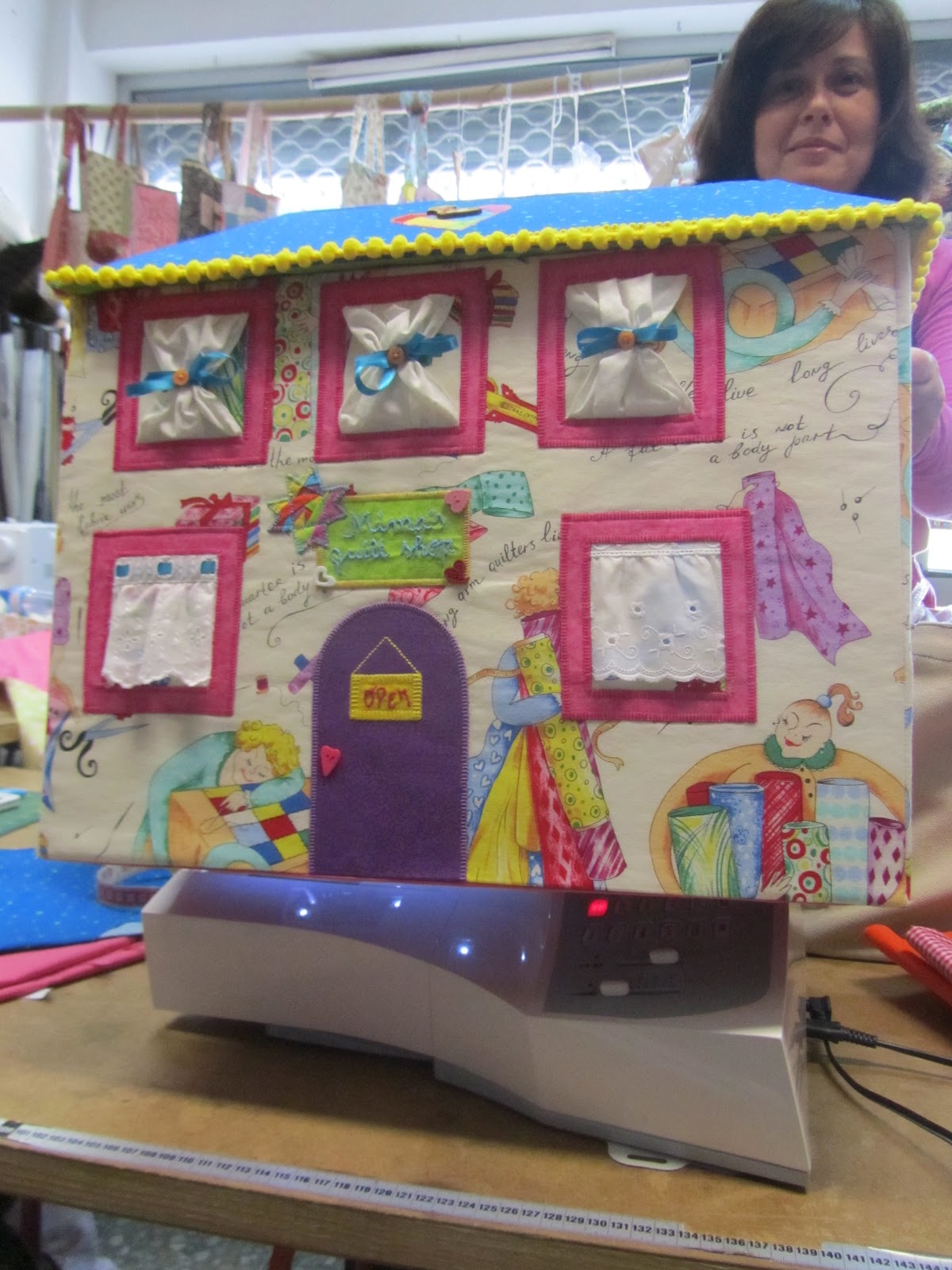 A casinha da Maryia... Este trabalho deu muito que falar.  Penso que levou quase umas 5 a 7 aulas para chegar a este ponto.  A casa é a capa para a maquina de costura